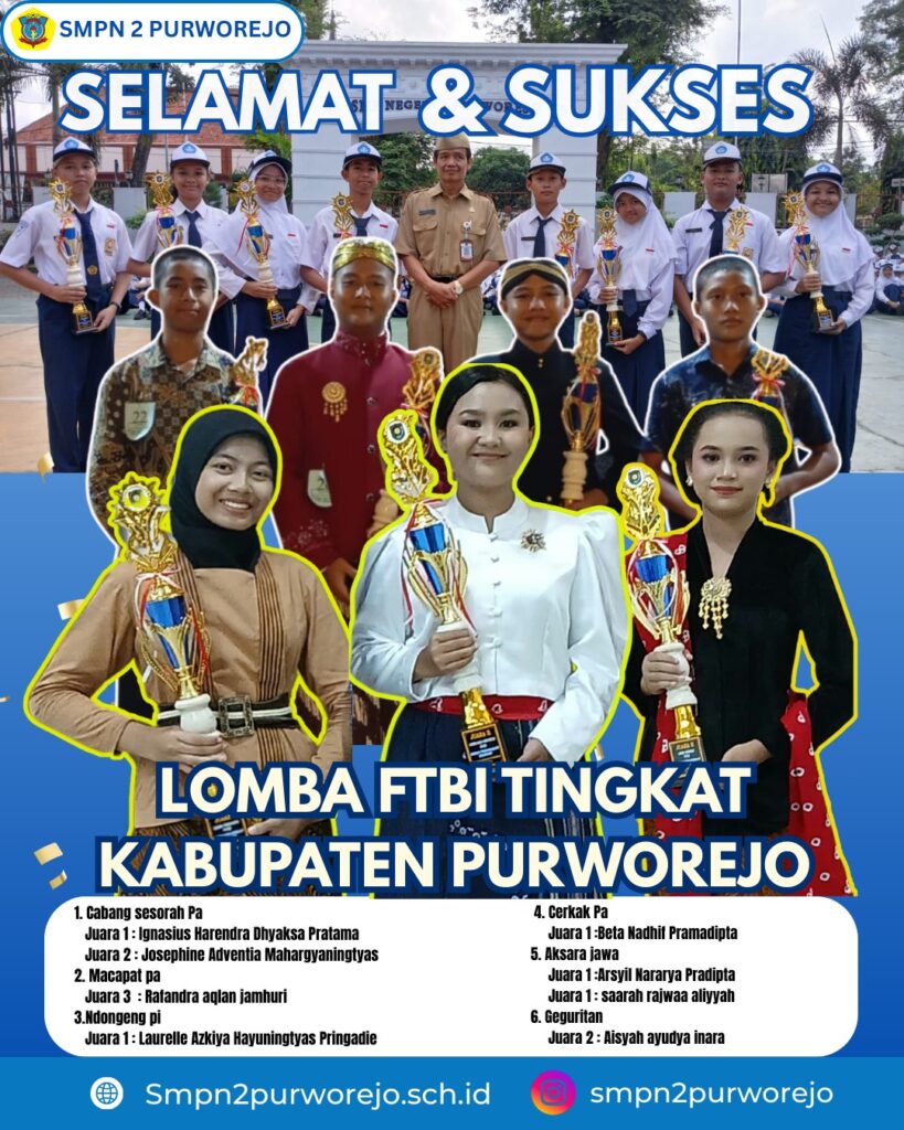 SMP Negeri 2 Purworejo kembali menorehkan tinta emas dalam ajang Festival Tunas Bahasa Ibu (FTBI) 2025. Festival tahunan yang digelar Balai Bahasa Provinsi Jawa Tengah ini bertujuan menghidupkan kembali semangat generasi muda dalam mempelajari, melestarikan, dan mengembangkan bahasa serta sastra Jawa—bahasa ibu yang menjadi identitas budaya masyarakat Jawa.