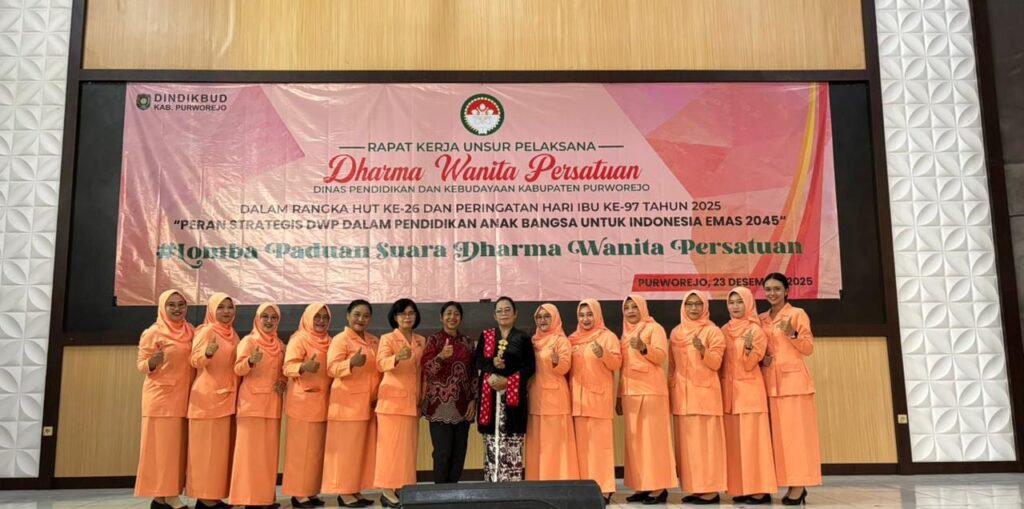 Dalam rangka memperingati Hari Ulang Tahun Dharma Wanita Persatuan, Dinas Pendidikan dan Kebudayaan Kabupaten Purworejo menyelenggarakan lomba menyanyikan Mars dan Hymne Dharma Wanita. Kegiatan ini dilaksanakan pada Selasa, 23 Desember 2025, bertempat di Gedung Kesenian WR Soepratman Purworejo. Lomba berlangsung dengan tertib, penuh semangat kebersamaan, dan nuansa kekeluargaan yang kental. Acara ini menjadi salah satu bentuk apresiasi terhadap peran strategis Dharma Wanita dalam mendukung dunia pendidikan. Sejak pagi hari, para peserta telah mempersiapkan diri dengan penuh antusias. Setiap regu tampil dengan semangat yang sama untuk memberikan penampilan terbaik. Suasana gedung terasa hidup dengan lantunan lagu penuh makna. Penonton yang hadir turut memberikan dukungan secara tertib. Kegiatan ini sekaligus menjadi ajang silaturahmi antarinstansi pendidikan. Semangat kebersamaan menjadi warna utama sepanjang kegiatan berlangsung.