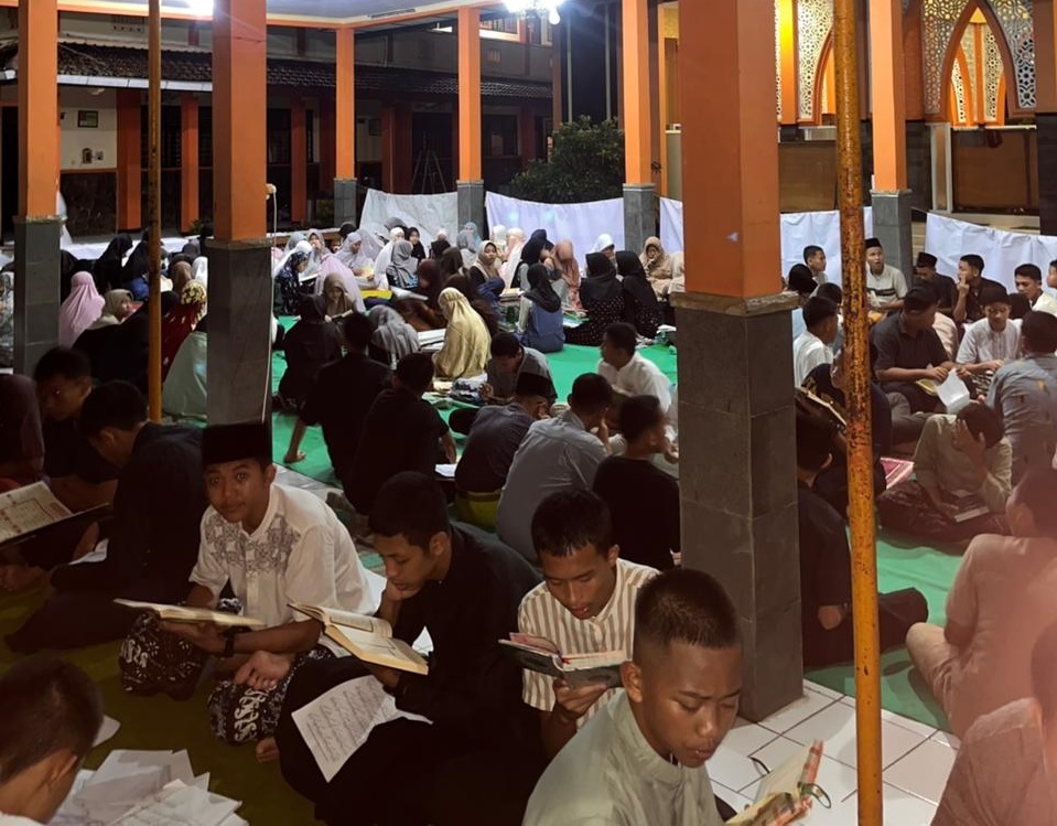 Memasuki malam hari, kegiatan semakin mendalam dengan pelaksanaan shalat Isya dan Tarawih berjamaah. Setelah istirahat singkat, peserta kembali mengikuti materi belajar membaca dan memahami kitab kuning. Momen ini menjadi kesempatan berharga untuk memperkuat pemahaman agama secara lebih mendalam. Peserta kemudian beristirahat di ruang yang telah dipisahkan antara putra dan putri dengan pengawasan panitia. Pada sepertiga malam terakhir, seluruh peserta dibangunkan untuk melaksanakan qiyamul lail di mushola sekolah. Suasana hening dan penuh kekhusyukan menyelimuti pelaksanaan shalat Tahajud. Kegiatan dilanjutkan dengan sahur bersama yang berlangsung sederhana namun penuh kebersamaan. Setelah itu, peserta melaksanakan shalat Subuh berjamaah dengan penuh ketenangan. Tadarus Al-Qur’an menjadi penutup rangkaian ibadah pagi yang sarat makna. Kegiatan spiritual ini memberikan pengalaman batin yang mendalam bagi seluruh peserta.